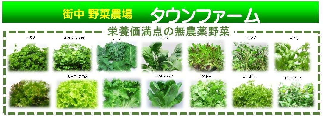 タウンファームで生産される野菜、ハーブそしてエディブルフラワー類など
