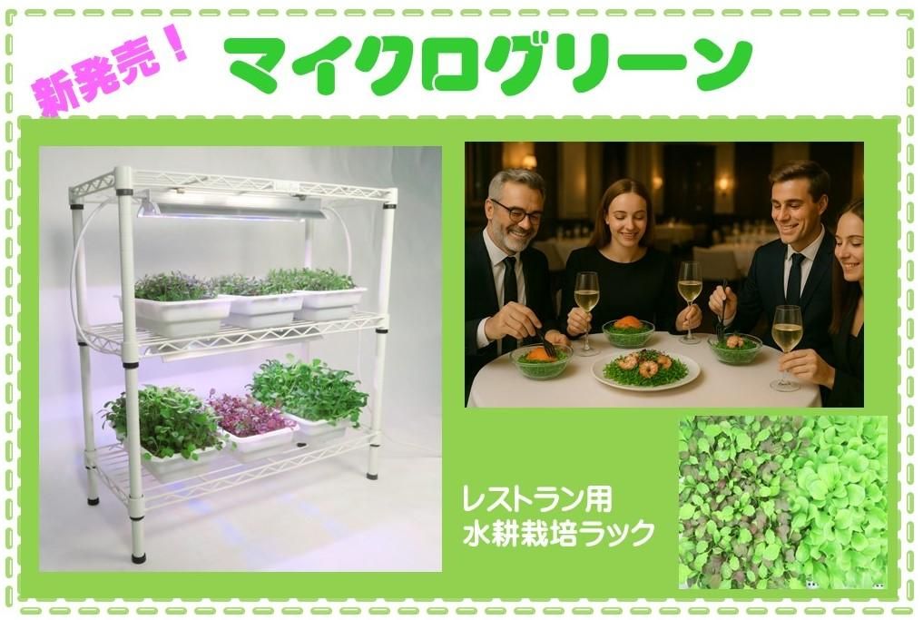 最近では、家庭用や店舗用の水耕栽培機器(例:マイクロリーフ育成ラックなど)を使い、